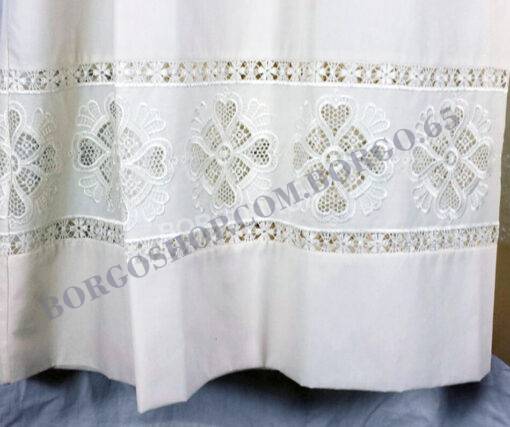 ALB white/ivory mixed cotton with central and double embroidery turn