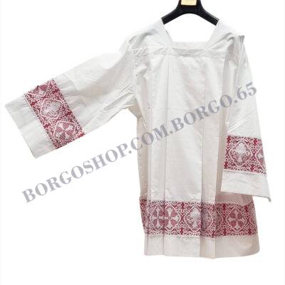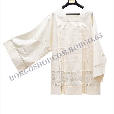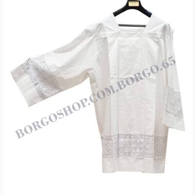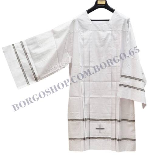 WHITE SURPLICE with inserts  LIGHT GREY mixed cotton Vatican Style  with double turn  and central cross
