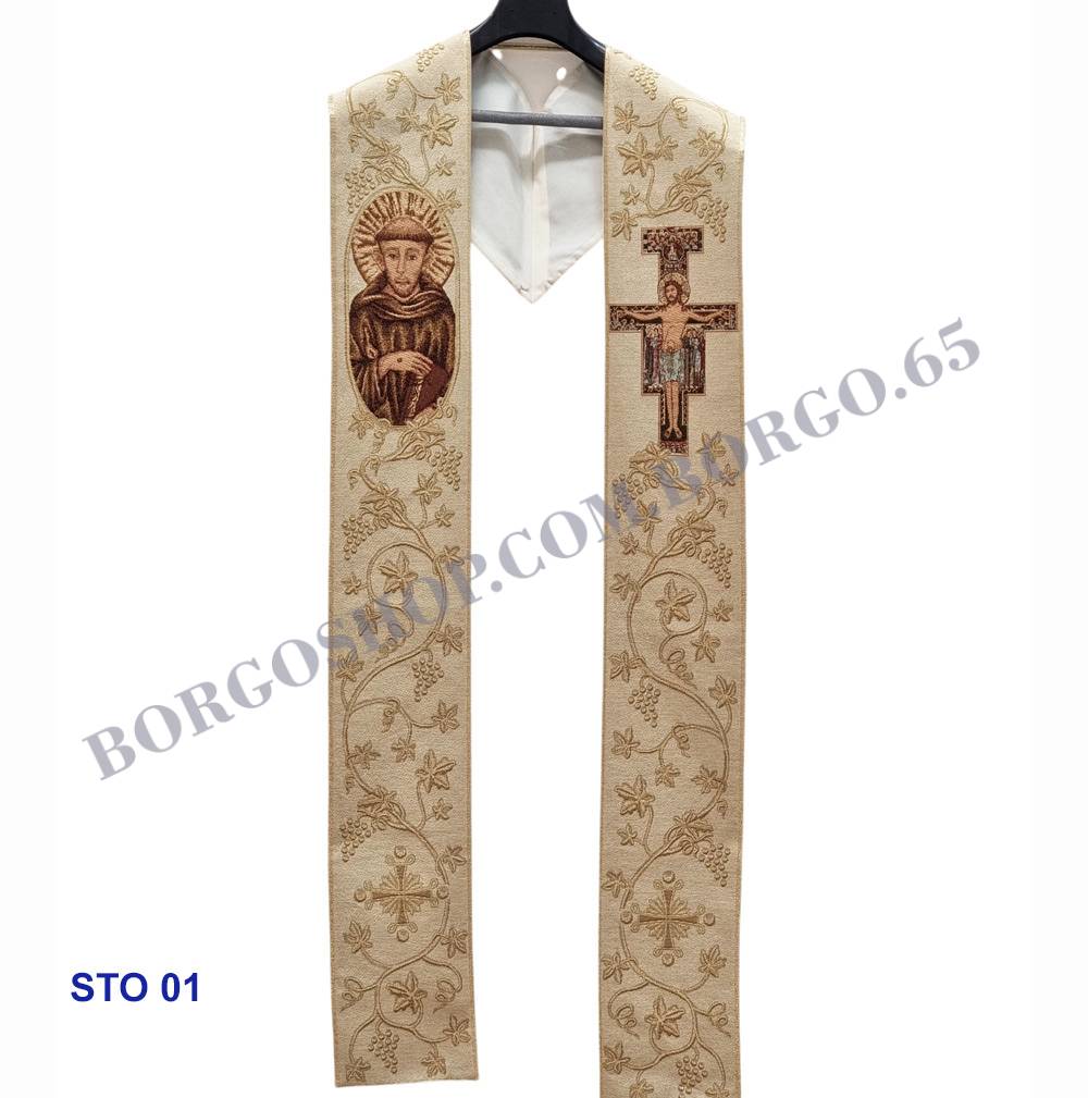 ARTICOLI PER  FRANCESCANI realizzati con telaio computerizzato con fili di cotone, seta, lurex, e fili colorati pregiati