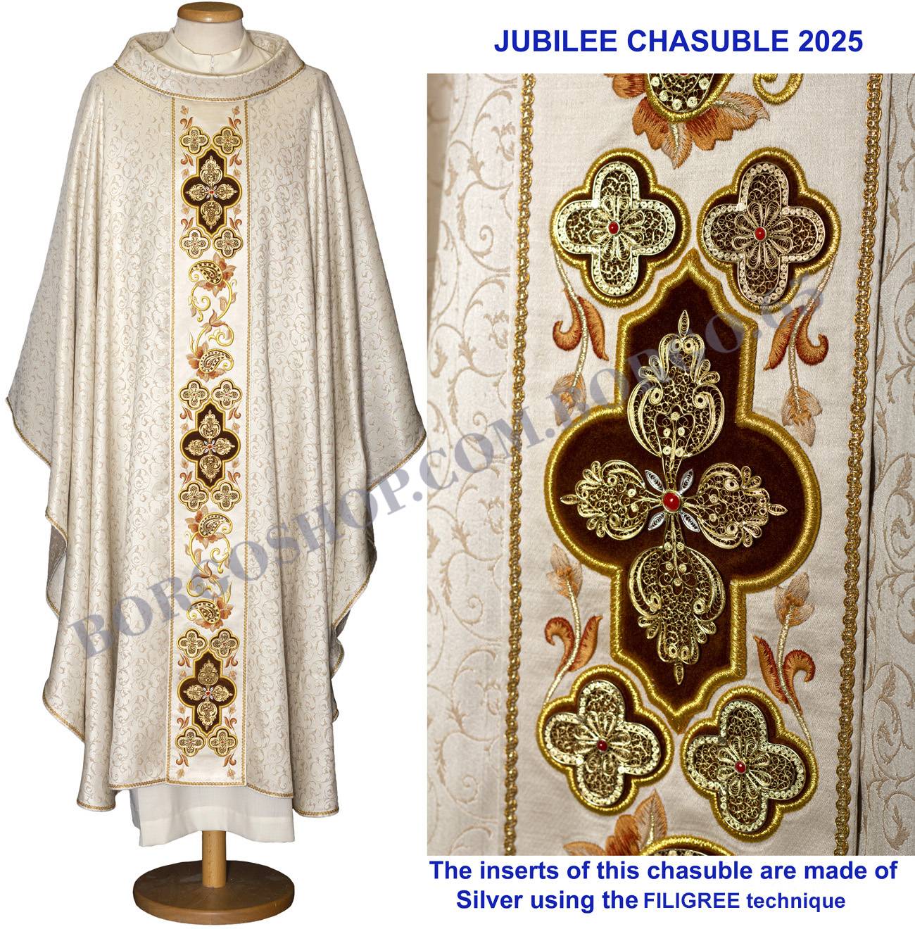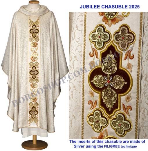CASULA SPECIALE REALIZZATA PER IL GIUBILEO 2025 CON TESSUTO OPERATO 100% SETA  extra LEGGERO