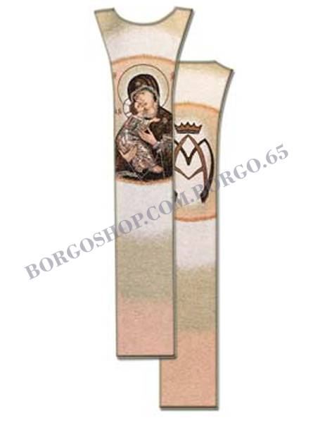 Scapolare STILE CLASSICO con immagini Fronte & Retro ricamate al telaio, cotone, seta, fili pregiati & lurex.