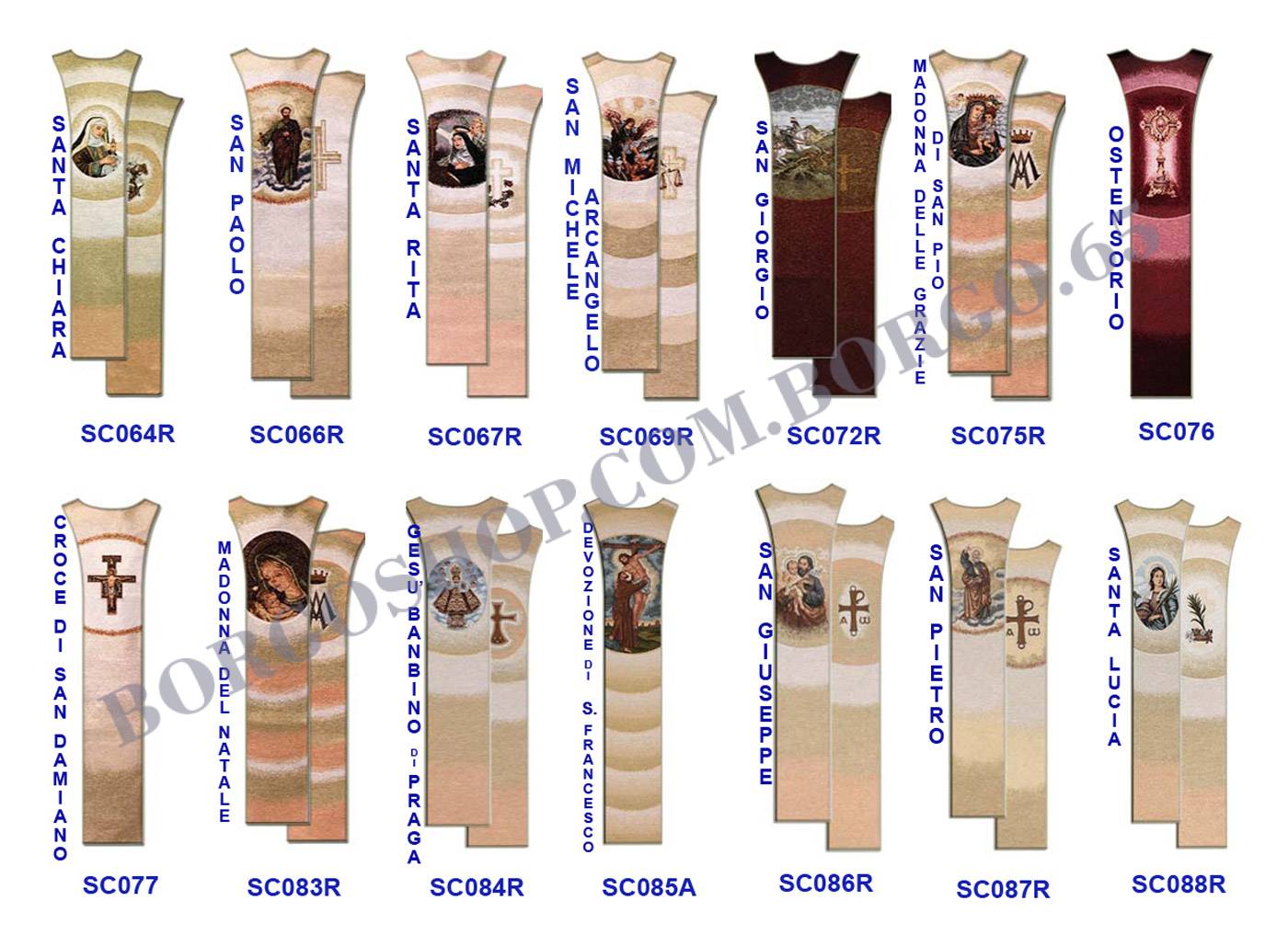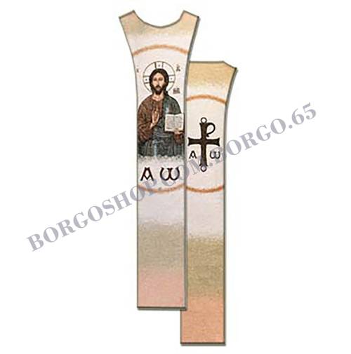 Scapolare STILE CLASSICO con immagini Fronte & Retro ricamate al telaio, cotone, seta, fili pregiati & lurex.