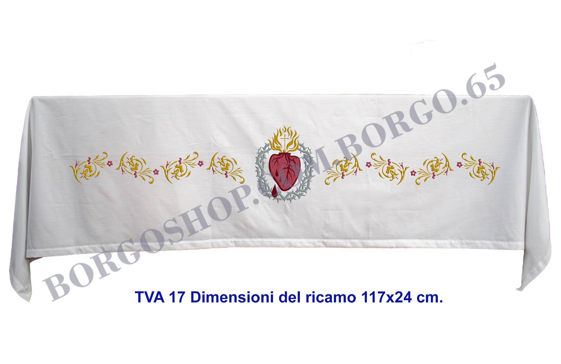 Tovaglia per altare con simbolo del Sacro Cuore TVA 17 misure della tovaglia cm.160×300